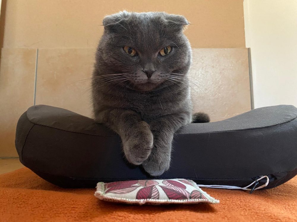 Schottische Faltohrkatzen sind Qualzuchten und leider hat auch Lotta dadurch rassetypische Krankheiten. Deshalb bekommt sie monatlich ein Schmerzmittel gespritzt, das sie lebenslänglich benötigt.